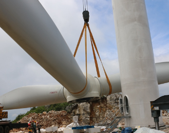 風(fēng)力發(fā)電機(jī)組在進(jìn)行設(shè)備安裝時,如遇到大風(fēng)、雨雪等惡劣天氣是不能進(jìn)行室外安裝作業(yè)的,惡劣天氣下無法保證作業(yè)的安全性,很容易發(fā)生危險。而在進(jìn)行葉片吊裝時須使用扁平吊裝帶進(jìn)行作業(yè),扁平吊裝帶面積寬,受力面積較大,而圓形吊裝帶受力面積較小,在吊裝葉片時容易滑動,其安全性無法保障。